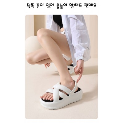 뒷쪽 끈이 있어 물놀이에 편하며 6CM 굽높이 입니다